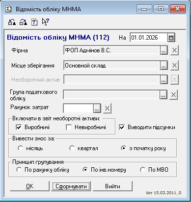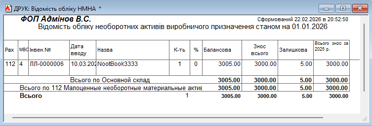 Відомість наявності ОС, МНМА, НМА станом на дату