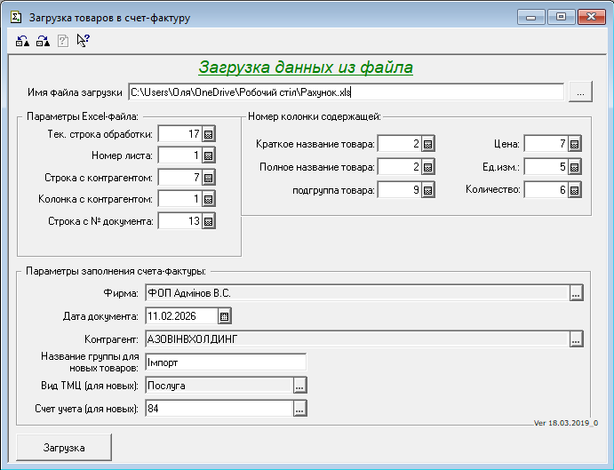 Імпорт з Excel-файлу до Рахунку-фактури