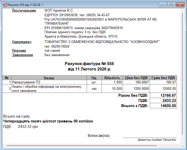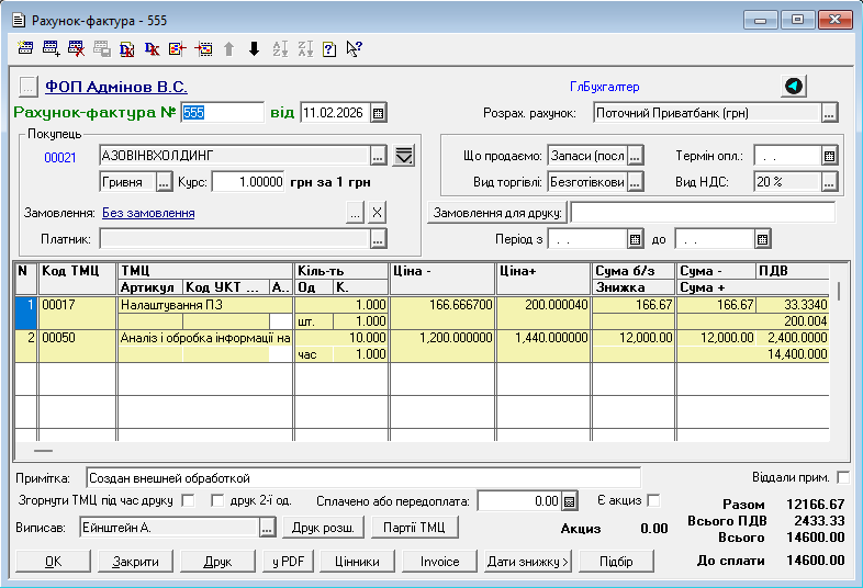 Звіт Таблиця по рахунку-фактурі