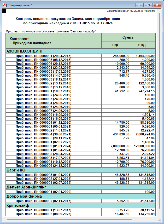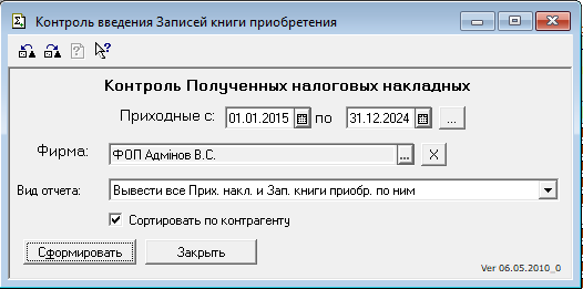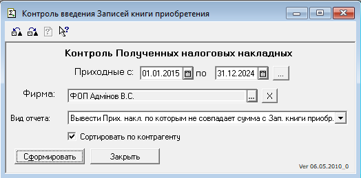 Контроль отриманих податкових накладних, прибуткування та оплати