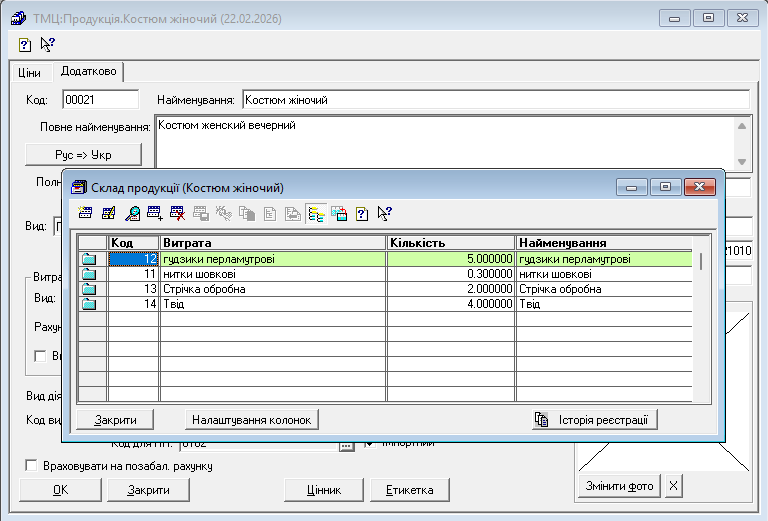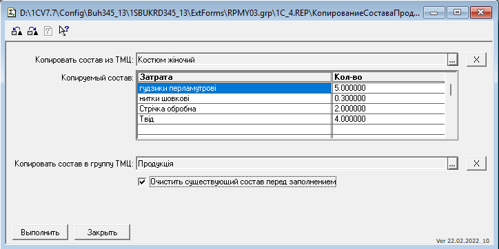 Копіювання состава продукції