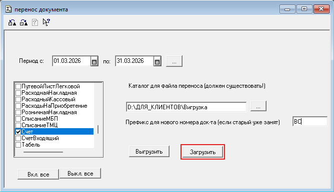 Перенесення документів між однаковими базами даних