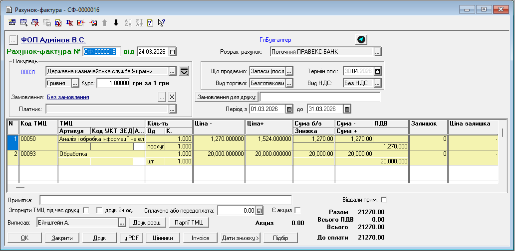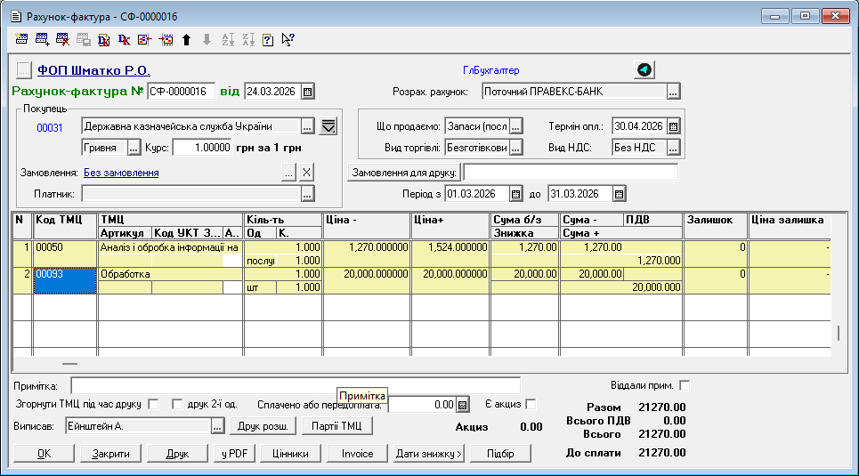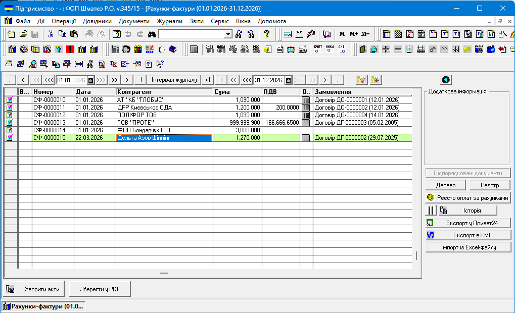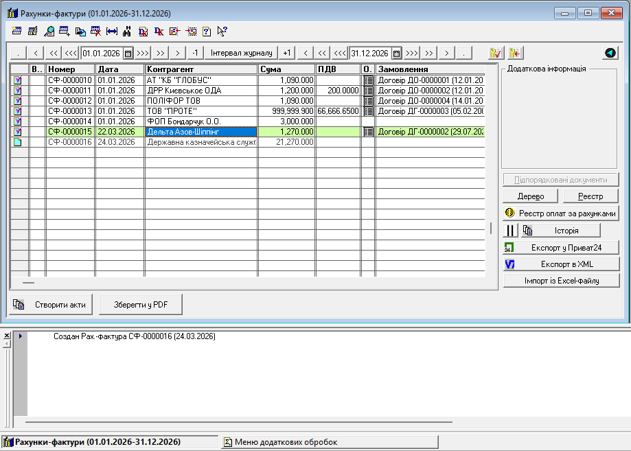 Контроль отриманих податкових накладних, прибуткування та оплати