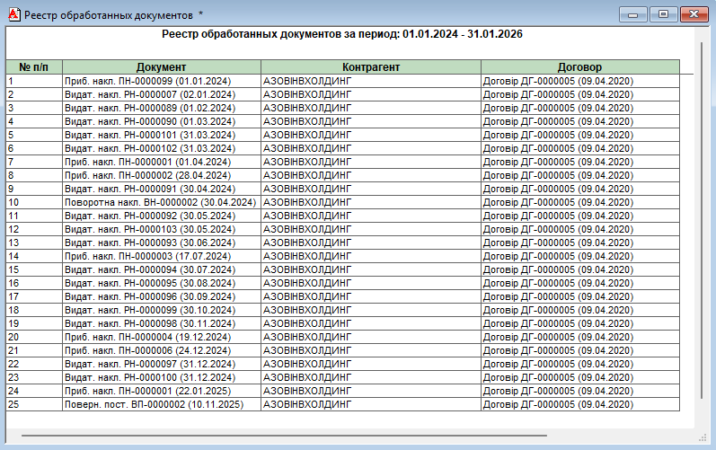 Реєстр прибуткових накладних з аналітикою
