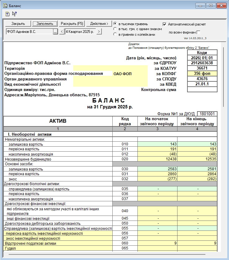 Звіт з ОЗ (бухгалтерський + податковий облік)
