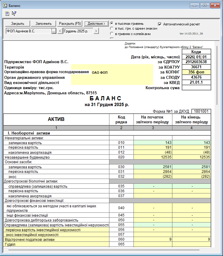 Відомість наявності ОС, МНМА, НМА станом на дату