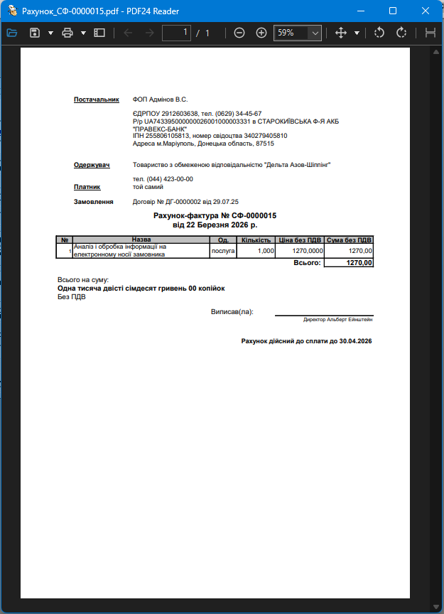 На підставі договору можуть бути введені рахунки-фактури та рахунки вхідні, прибуткові, видаткові та податкові накладні, сформований запис книги придбання.