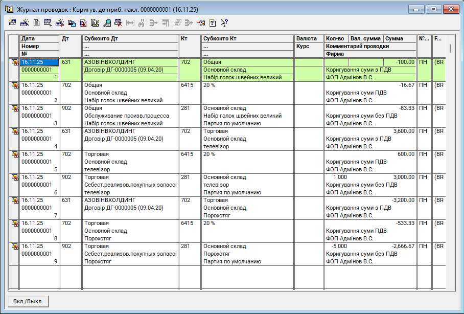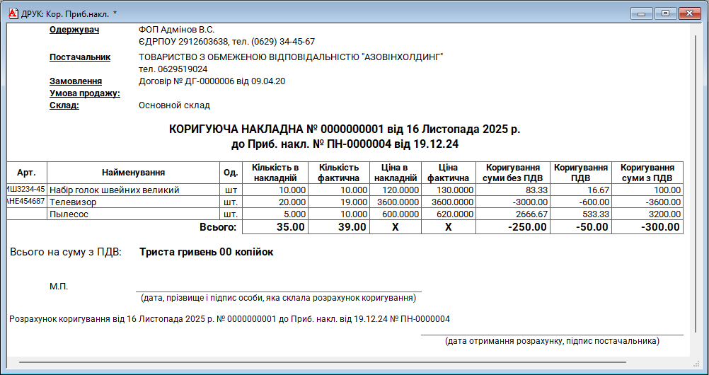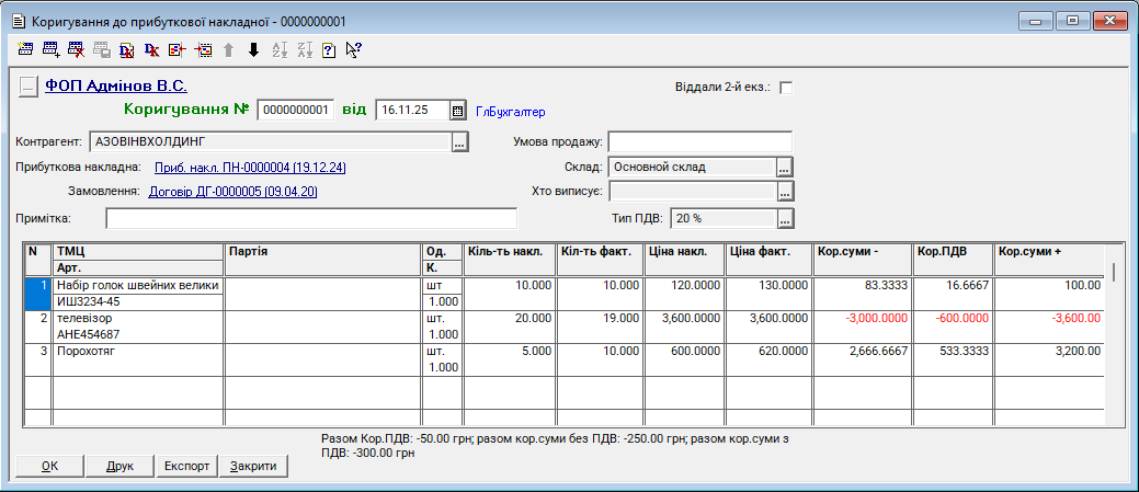 Коригування до прибуткової накладної