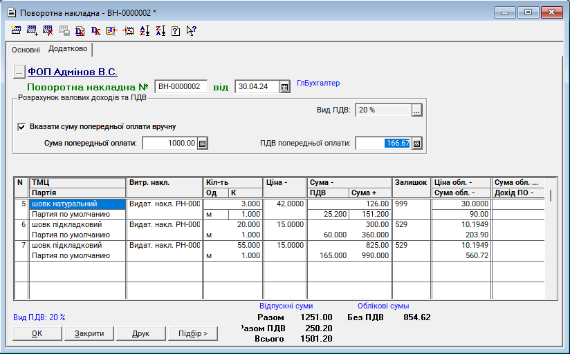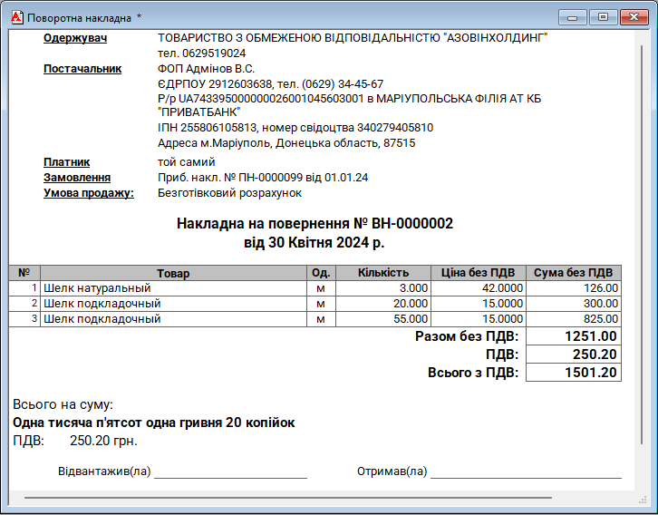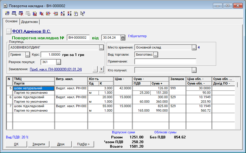 Документ «Накладна на повернення» застосовується при введенні даних про повернення товарів покупцями, формуванні бухгалтерських проводок та звітності. Він забезпечує точність обліку руху товарів і автоматизацію контролю за взаєморозрахунками з контрагентами.