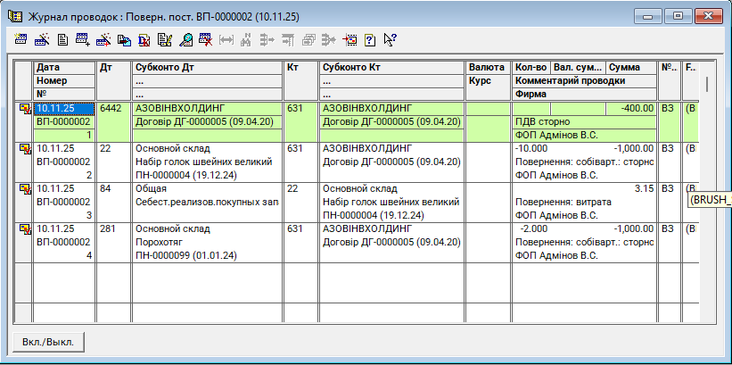 Виправлено помилку проводок: не нараховувалася сума доходу/витрати (різниця між собівартістю та сумою повернення), якщо собівартість нульова.