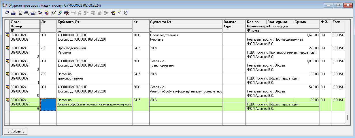Документ є підставою для визнання доходу від основної діяльності. При проведенні він автоматично формує наступні бухгалтерські проводки: