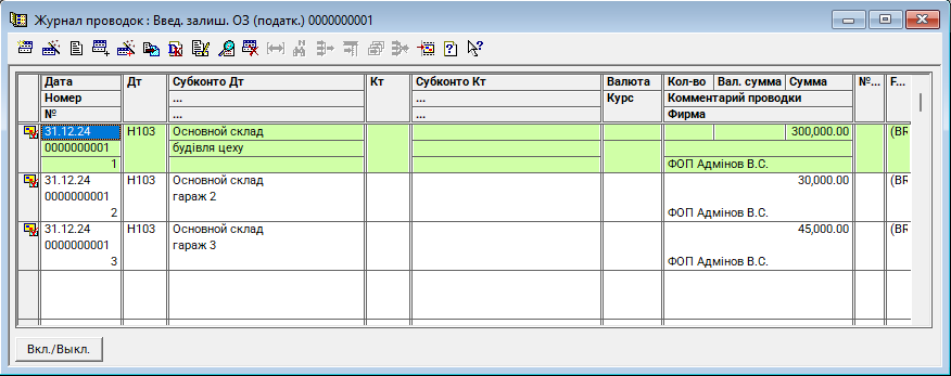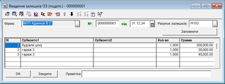 Введення залишків ОЗ (податковий)