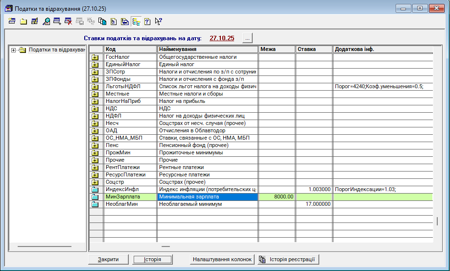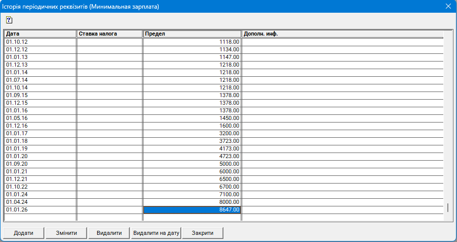 Значення та межі для довідника «Податки та відрахування» після 1 січня 2026 року оновлено згідно з бюджетом на 2026 рік.