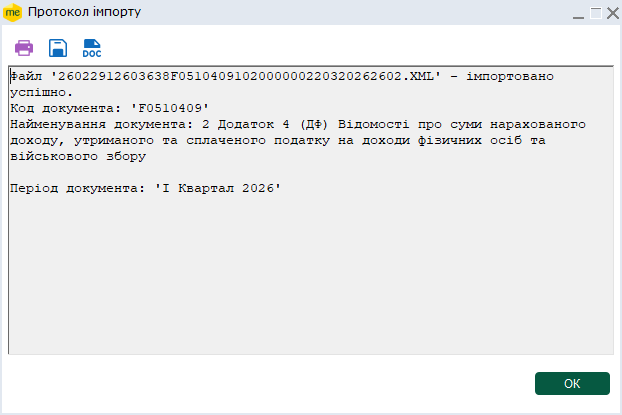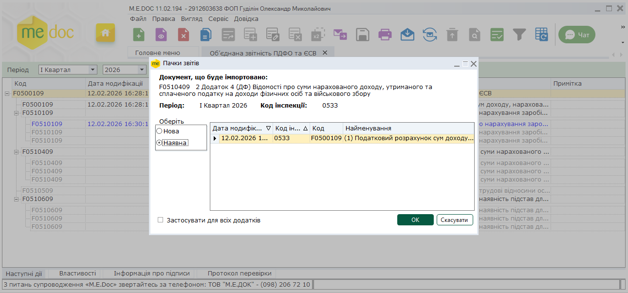 Експорт у XML (F0510409): Формування електронного файлу, готового до завантаження в «M.E.Doc» (схеми вивантаження діють з 01.01.2026).
