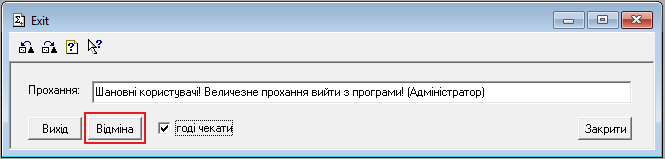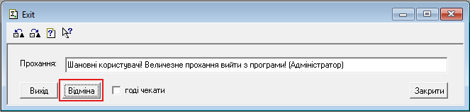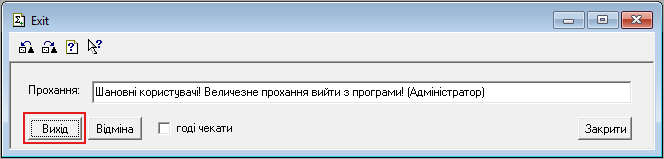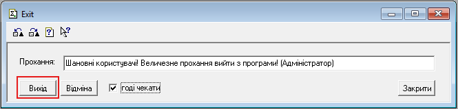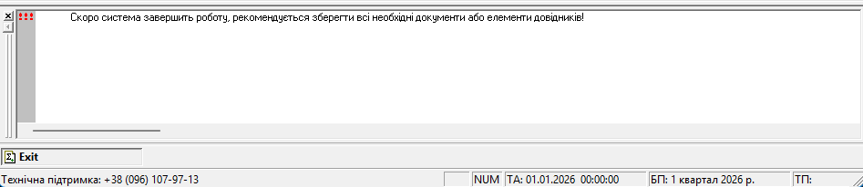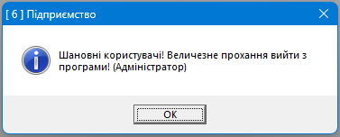 Обробка дозволяє надіслати усім користувачам службове повідомлення (відображається тільки у вікні програми 1С) або запустити пошаговий процес завершення роботи бази даних з попередженням користувача. Після активації функції, у користувача є приблизно 30 секунд до кожного попередження. Після 3-го попередження відбувається примусове закріття усіх вікон й самої програми без збереження відкритих об'єктів користувача. Обробка буде у нагоді перед регламентними роботами, оновленням або внесенням якихось змін якщо у програмі працюють декілька користувачів.
