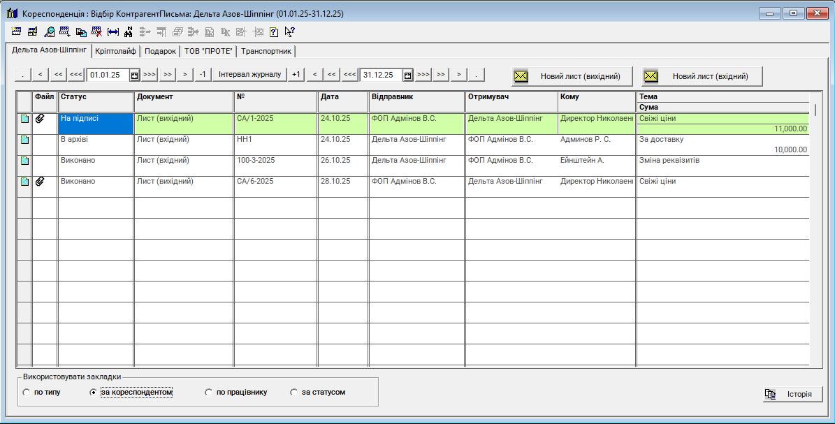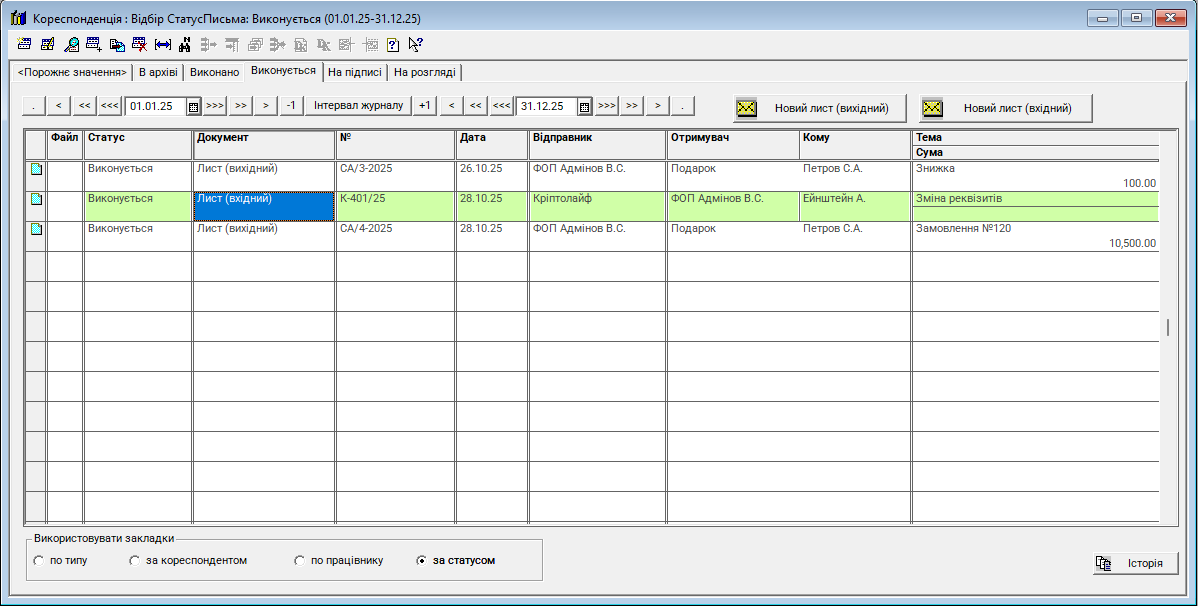 Журнал "Кореспонденція" - це повністю новий журнал, призначений для комплексного управління, обліку та контролю всіх вхідних і вихідних офіційних листів.