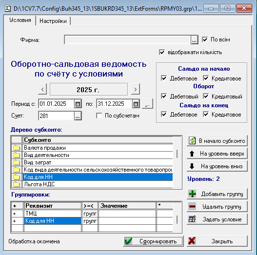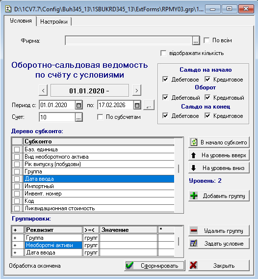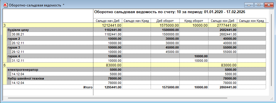 Оборотно-сальдова відомість за рахунком з реквізитом із субконто
