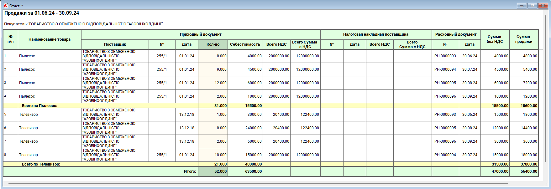 Звіт про продаж товарів клієнту