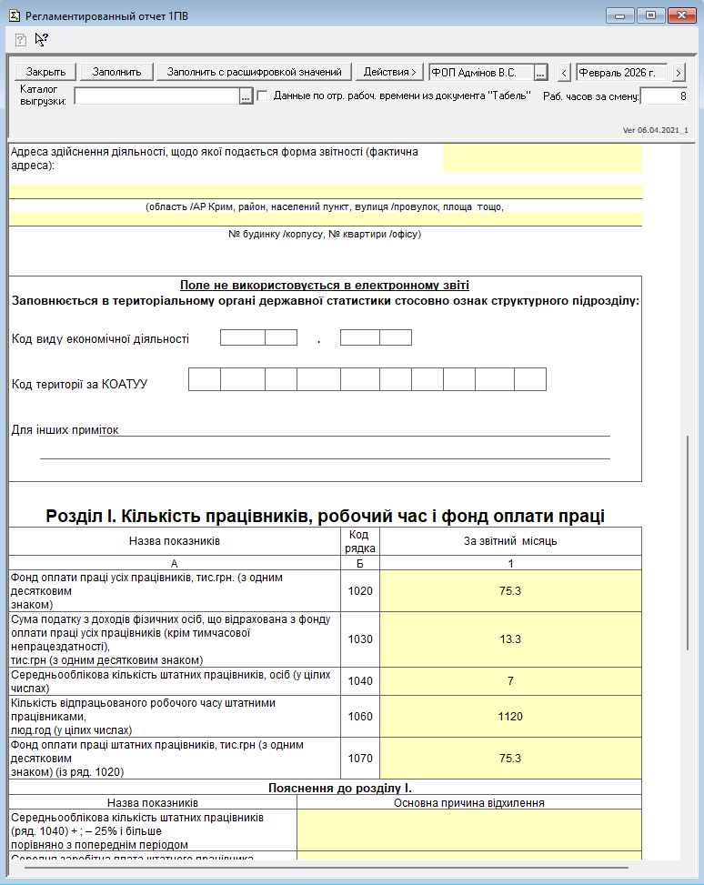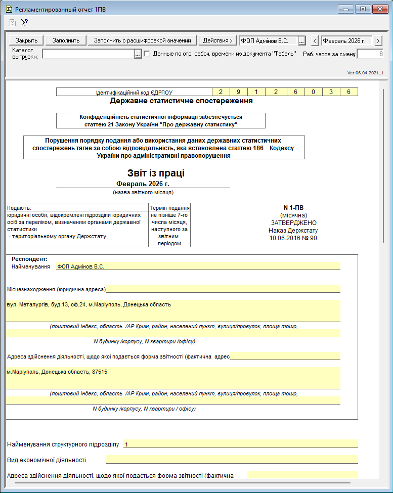 Звіт із праці (Форма №1-ПВ)