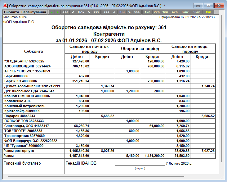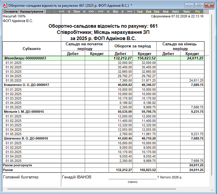 Деталізація за субрахунками: можливість бачити дані окремо по кожному субрахунку або згорнуто.
